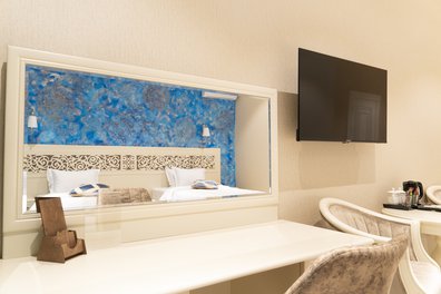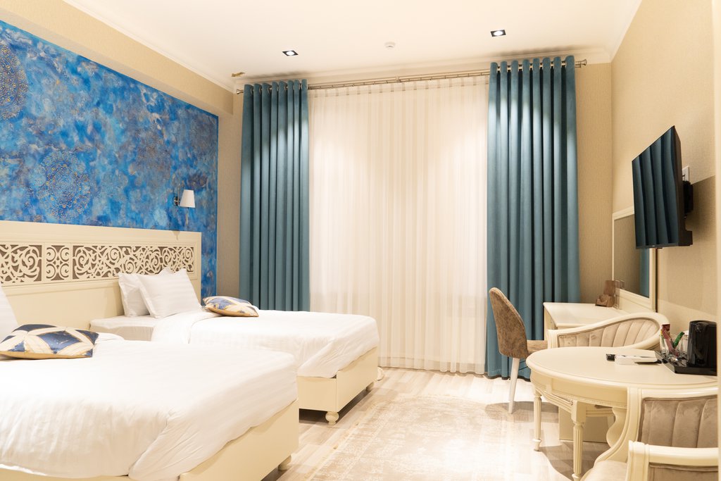 Улугбек — это один из знаменитых среднеазиатских государственных деятелей, правитель тюркской державы Тимуридов, сын Шахруха, внук Тамерлана. Номер,с площадью ___ квадратных метро, посвящен выдающемуся математику, астроному, просветителю и поэту своего времени. В номере вы сможете прочувствовать атмосферу самого просвещённого и мудрого деятеля в истории Востока.